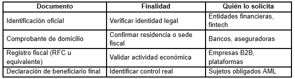 - ¿Qué documentos se solicitan en un formulario KYC?